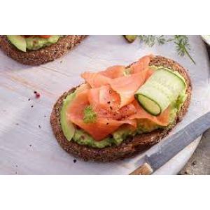 Base riz noir, carottes, avocat, champignons, mangue, thon mariné & truite saumonée, cacahuètes
